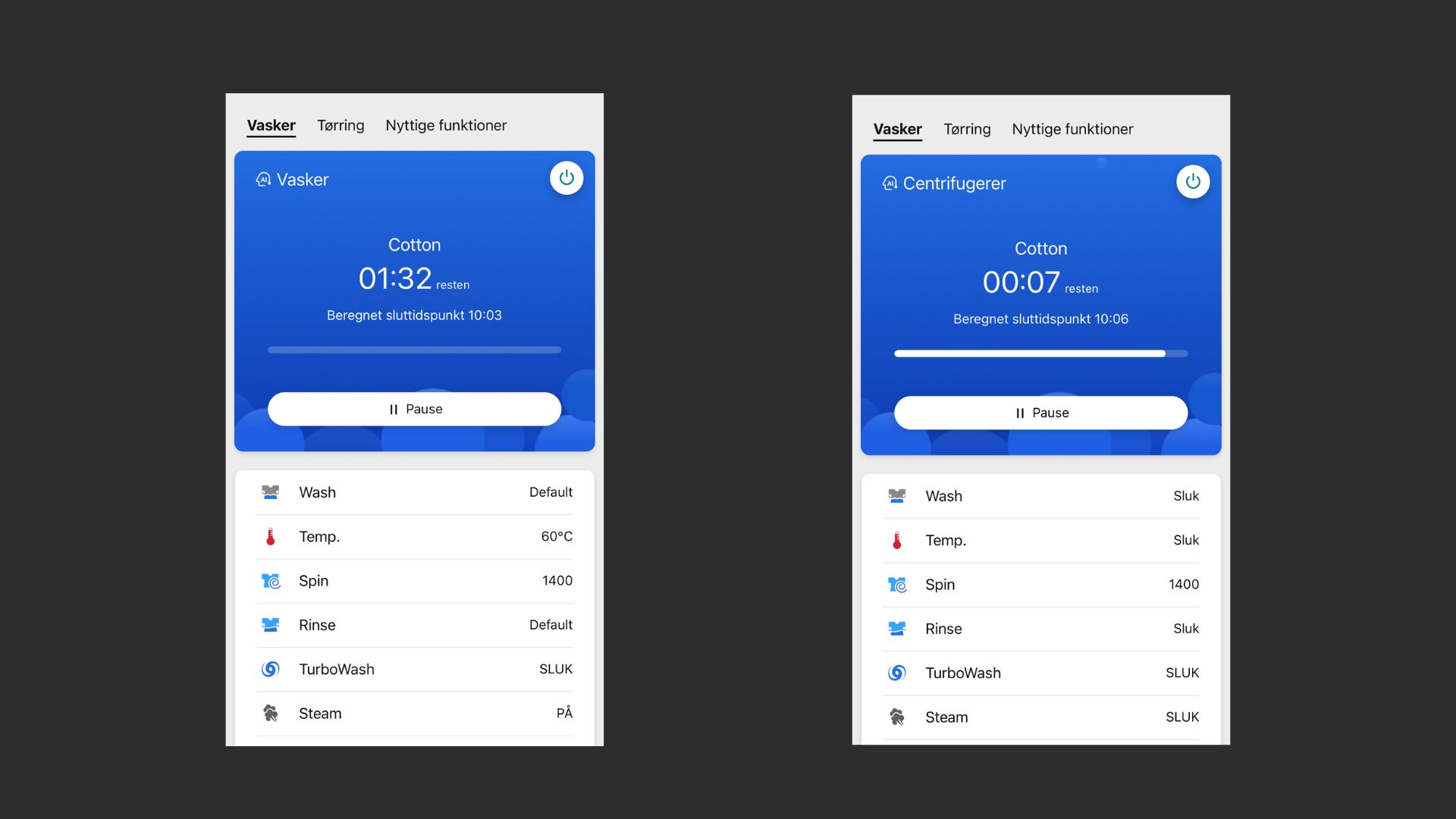 Kuulostaa pikkujutulta. Vähän pöhköltäkin. Mutta jos pesukone ja kuivausrumpu ovat kellarissa tai muuten kaukana sieltä, missä aikaa suurimmaksi osaksi vietetään, on seuraava skenaario varmaan tuttu: reipas pyykkäri raahautuu paikan päälle tyhjentämään konetta ja huomaakin, että pesuohjelmaa onkin vielä kolme minuuttia jäljellä. Miten ärsyttävää! Ne kolme minuuttia konetta tuijottaessa tuntuvat pitkältä kuin nälkävuosi.