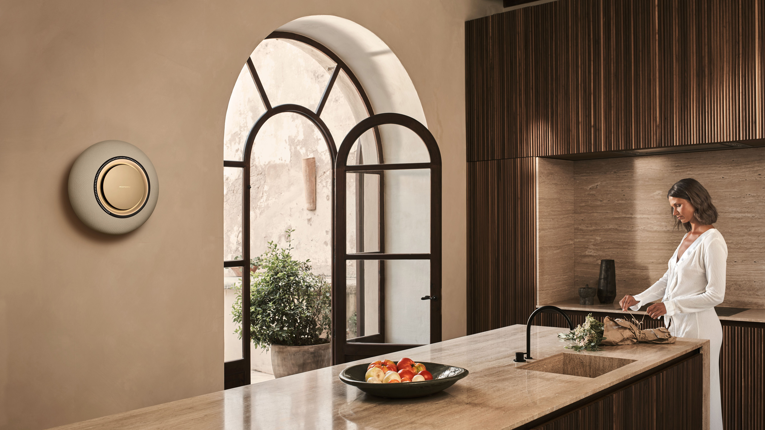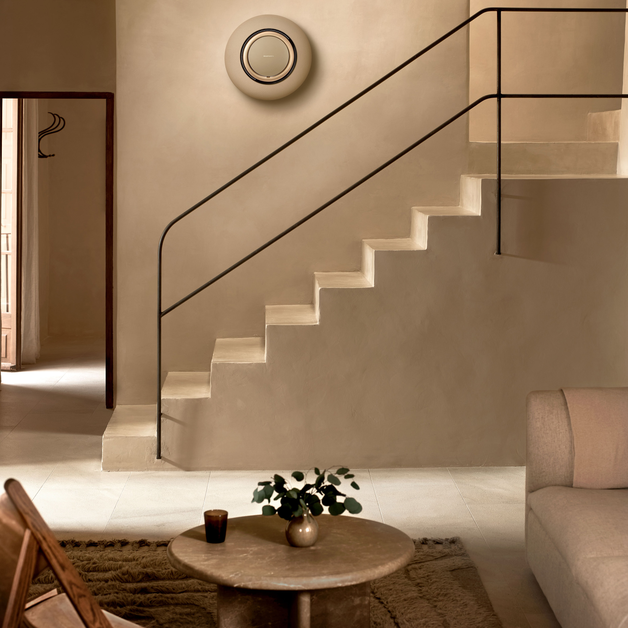 Mistään ei selviä, kuinka monelle vahvistinkanavalle 370 watin teho jakaantuu, mutta donitsinmuotoisessa kaapissa on yhteensä kahdeksan kaiutinelementtiä. Kolme diskanttia, neljä täysrekisteriä ja jaettu 8-tuumainen bassokaiutin. Jokaisella on todennäköisesti oma vahvistinkanavansa, jotta stereoefektillä maustettu tilaääni onnistuu. Kaiutin tukee Dolby Atmos -formaatin lisäksi muitakin tilaääniformaatteja.