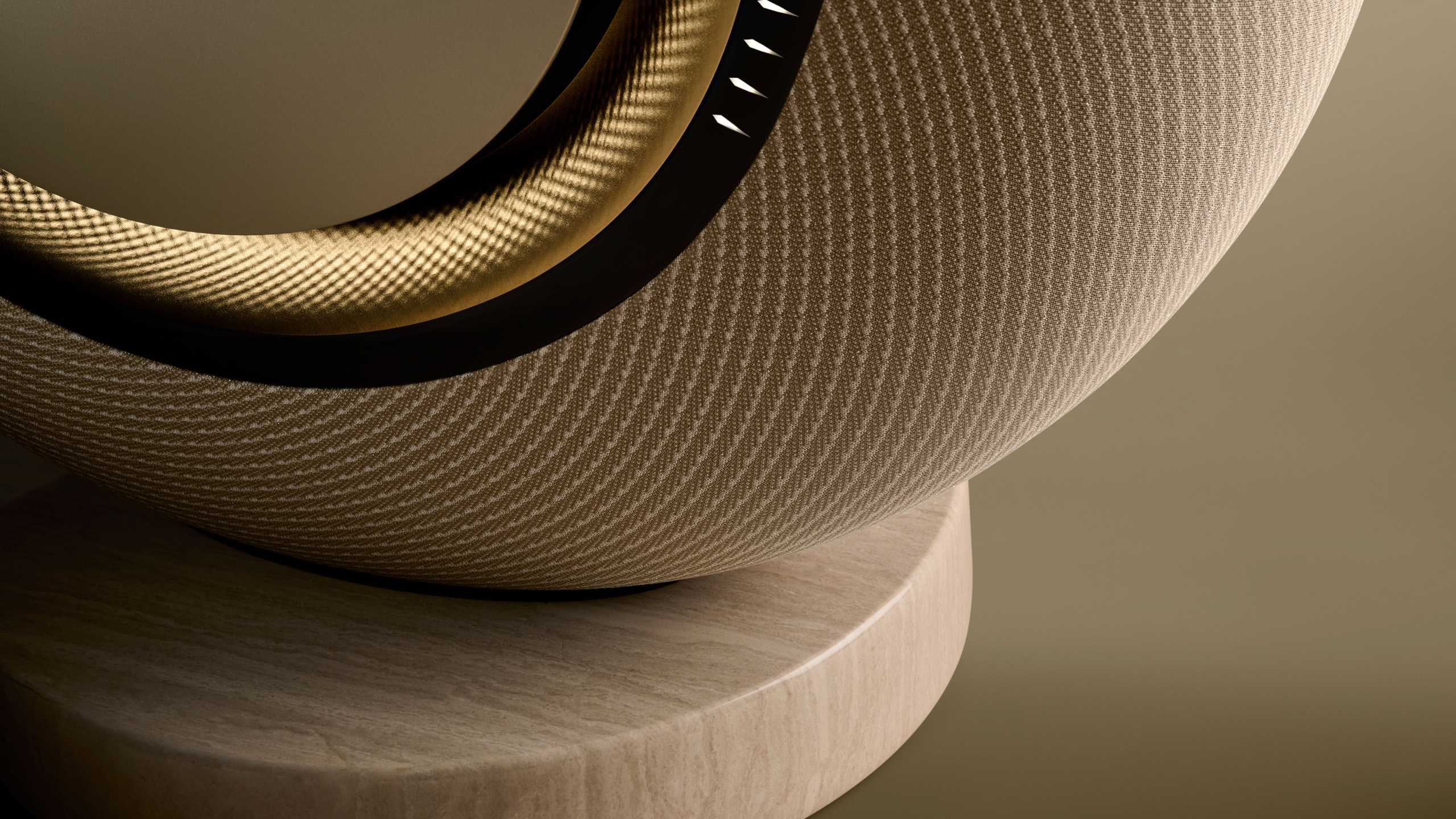 Nyt testattava Marantz Grand Horizon onkin nimensä mukainen. Pöytäkaiuttimeksi se herättää aikamoista kunnioitusta: pyöreä, lähes puoli metriä halkaisijaltaan ja reilut parikymmentä senttimetriä syvä kaiutin ei ihan pienelle pöydälle mahdukaan. Eikä ihan himpulalle, sillä kaiutin painaa 21 kiloa. Tukevan pidon varmistamiseksi kaiuttimella on paksu marmorijalusta. Tuote-esitteen mukaan jalusta tulee mukana ”ilmaiseksi”. Itse kaiutin maksaa peräti 6 000 euroa, joten ilmaisuudesta voi toki olla montaa mieltä.