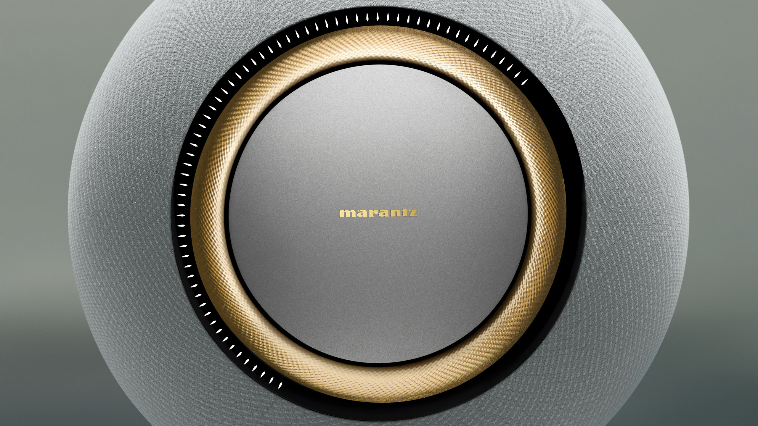 Kaiuttimessa ei juuri näy teknisiä yksityiskohtia. Ledvalonauha osoittaa volyymin lujuuden, ja senkin vain tarvittaessa: Marantz Grand Horizon on varustettu liiketunnistimilla, jotka heräävät ihmisen lähestyessä.