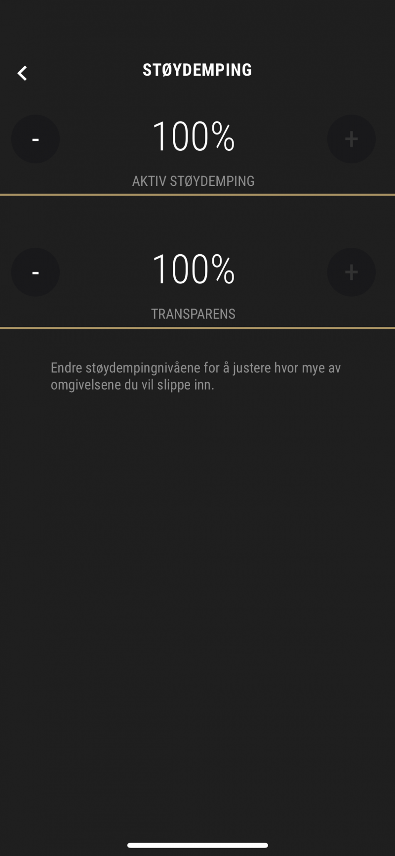 Sovelluksesta voi myös säätää vastamelun ja vastakohtaisesti äänten läpipääsyn määrää. Kuulokenapin hipaisuherkän ulkopinnan voi laittaa pois päältä, tai sitä voi käyttää vastamelun päälle/pois-kytkimenä tai taajuuskorjaimen tai puheavustajan valintaan.