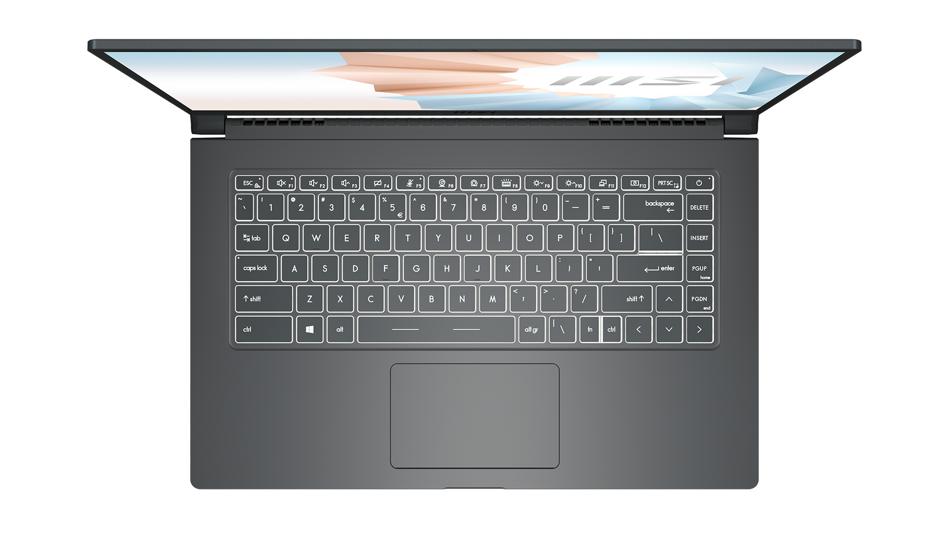 Näppäimistö on suuri ja miellyttävä ja kaikki näppäimet kunnon kokoisia. MSi ei lähtenyt tunkemaan erillistä numeronäppäimistöä kannettavaansa, mutta erikoisnäppäimet löytyvät. Näppäimistö on hinnan huomioiden hyvää laatua, mutta todettakoon kuitenkin, että liikkeet tuntuvat hieman pehmeiltä ja epävakailta. Tällaisen huomaa lähinnä, jos kirjoittaa sivukaupalla päivittäin – ja jos kalliimpi näppäimistö, johon verrata. Modern 15 A11:n näppäimistöllä on valkoinen taustavalaistus – vaikka kannettava onkin MSi:n valmistama, ei tällä kertaa kyseessä ole pelikone.
