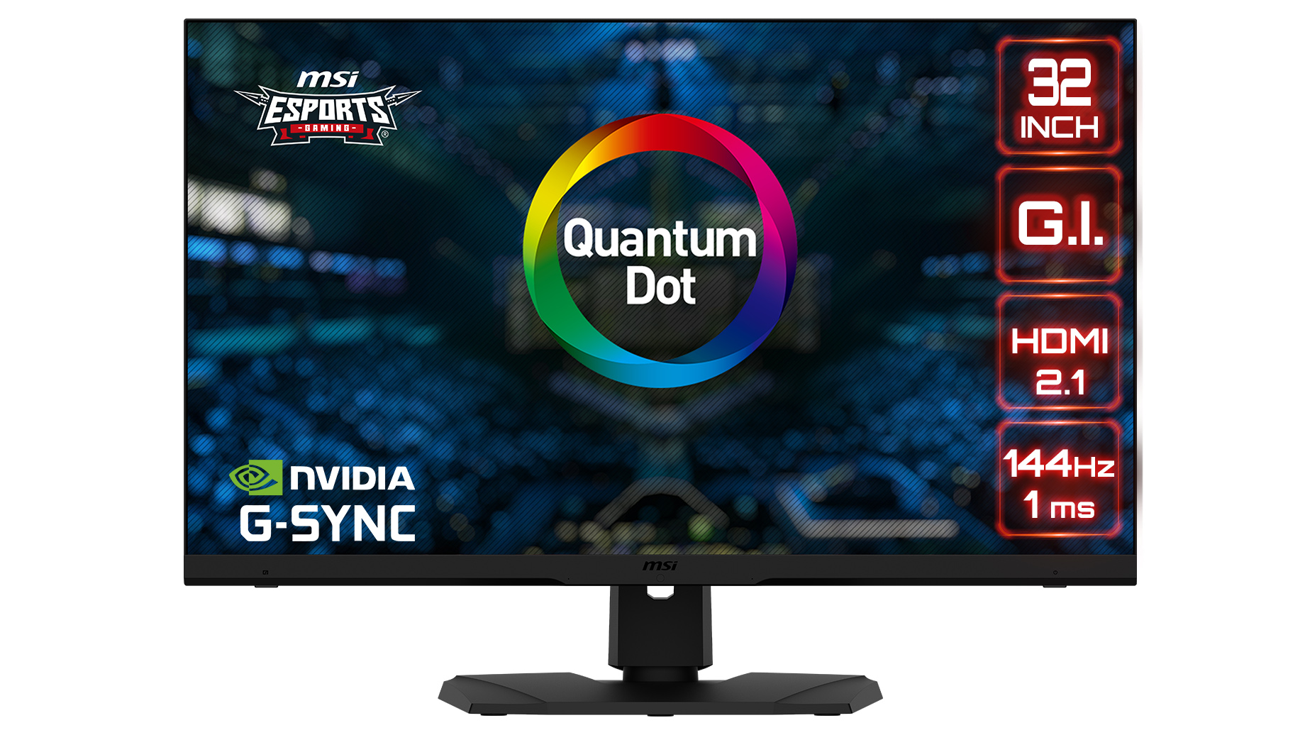 Laajan värikirjon aikaansaamiseksi MSI on valinnut näyttöönsä Quantum Dots -värisuotimen. Tavalliset pigmentit kuluttavat kirkkautta ja himmenevät ajan saatossa, kun taas kvanttipisteet ovat nanopartikkeleihin porattuja pieniä reikiä, joiden koko määrää, mitä valon aallonpituutta ja siten väriä kuvakennoon päätyy.