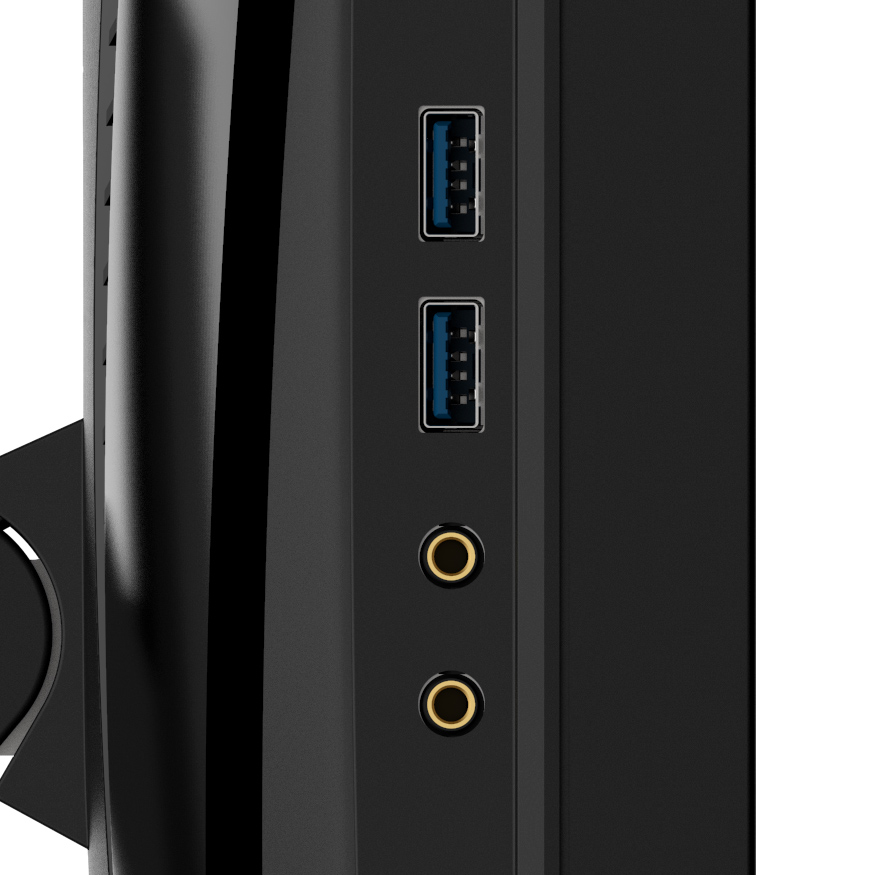 MSI Optix tukee 144 Hz:n virkistystaajuutta sekä HDMI:n että DisplayPortin kautta, ja lisäksi se tarjoaa liudan käyttäjäystävällisiä USB-sisääntuloja. Siinä on USB-C-näyttöliitäntä kannettavaa käyttävälle ja sisäänrakennettu hubi, jossa on peräti kuusi USB-A-sisääntuloa ja kolme USB-C-sisääntuloa, joihin saa kiinni ulkoisia kovalevyjä ja USB-tikkuja. Harmillista, että ne ovat 2.0 eikä 3.0, joten ne toimivat toivottua hitaammin. Mutta käyttökelpoisia ne silti ovat.