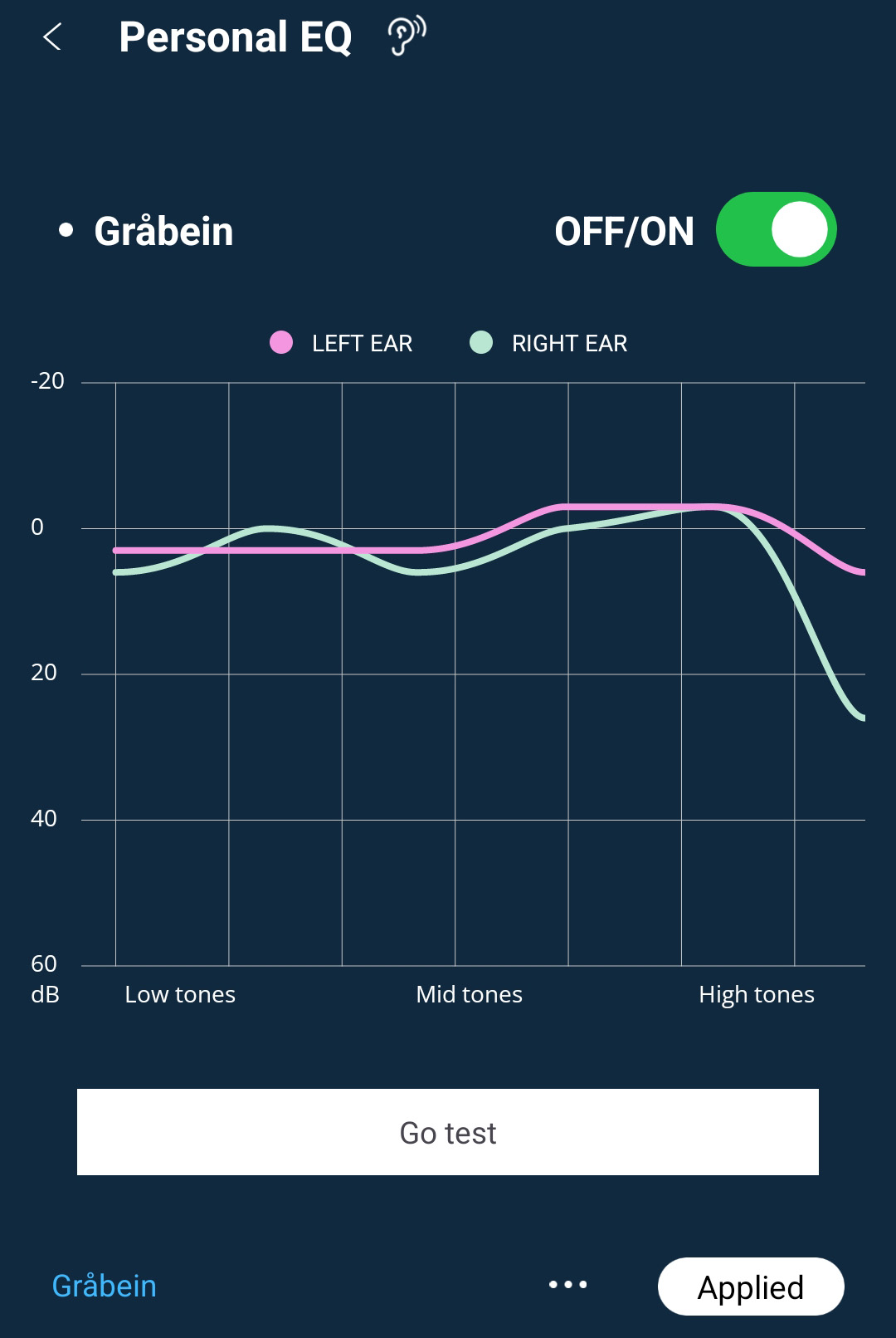 Se toimii, mutta huomasin tekniikassa heikkoudenkin: kun järjestelmä säätää vasemmalle ja oikealle korvalle taajuuskäyrät erikseen, muuttuu stereoperspektiivi. Muutoin tarkka äänikuvan keskusta korvautuu epämääräisellä sumulla. Olisi hyvä, että vaihtoehtona olisi myös tehdä kompromissi oikean ja vasemman kanavan välillä, ja käyttää samaa säätöä molemmille korville.