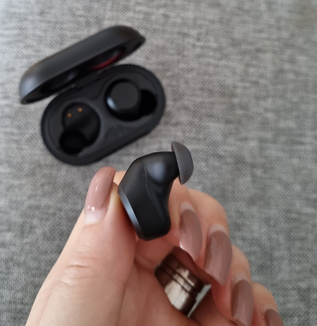 Kokeilen nappeja ja tajuan heti, että minun vaihdettava ensitöikseni niihin sovitteet. Niitä tuleekin pakkauksessa peräti viidet erilaiset. Sovitteet vain ovat todella ohuita, mikä tekee niistä muodottomia löllöjä, joita on vaikea käsitellä. Kärsivällisyyteni loppuu siihen ja jätän kuulokkeet odottamaan uutta yritystä seuraavana päivänä.
