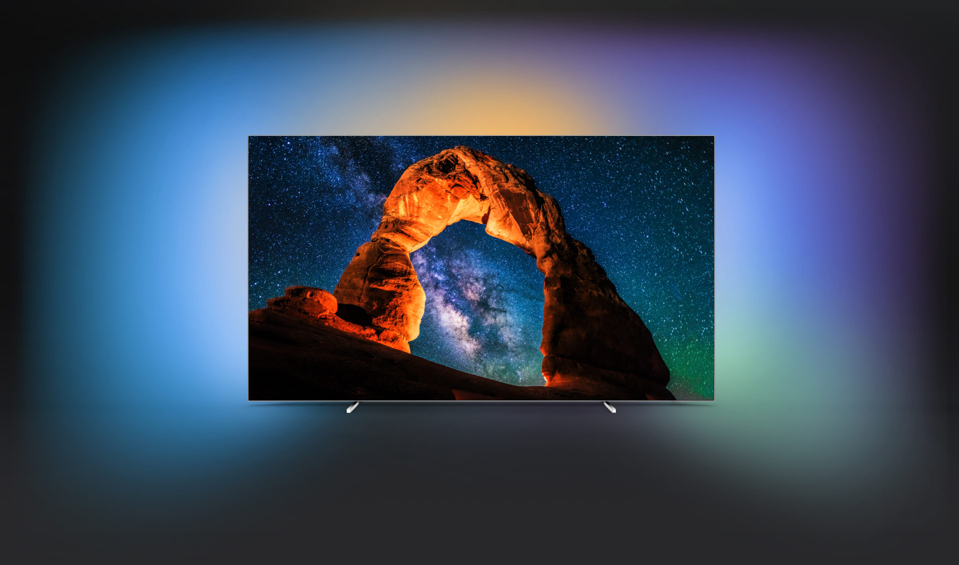 Philipsin televisioilla on ainutlaatuinen ominaisuus, jollaista ei muilta valmistajilta löydy. Puhumme tietysti Ambilight-valaistuksesta, joka valaisee television takana olevan seinän kaikilla sateenkaaren väreillä. Jotkut rakastavat sitä, toiset vihaavat. Meidän mielestämme se ehdottomasti lisää tunnelmaa ja tekee elokuvien katselusta silmille lempeämpää. Niinpä Ambilight toimii hyvin OLED-mallissa. Valaistuksen voi valita seuraamaan toimintaa dynaamisesti, rauhallisemmin tai vain antamaan staattista taustavaloa. Tämän vuoden uutuus on valaistuksen laajeneminen koko huoneeseen, jos käyttää tilassa värillisiä Ambilight Hue -polttimoita. Se tuo todella lisää romantiikkaa herkkiin elokuvailtoihin ja enemmän adrenaliinia toimintaleffoihin, urheiluun ja pelaamiseen.