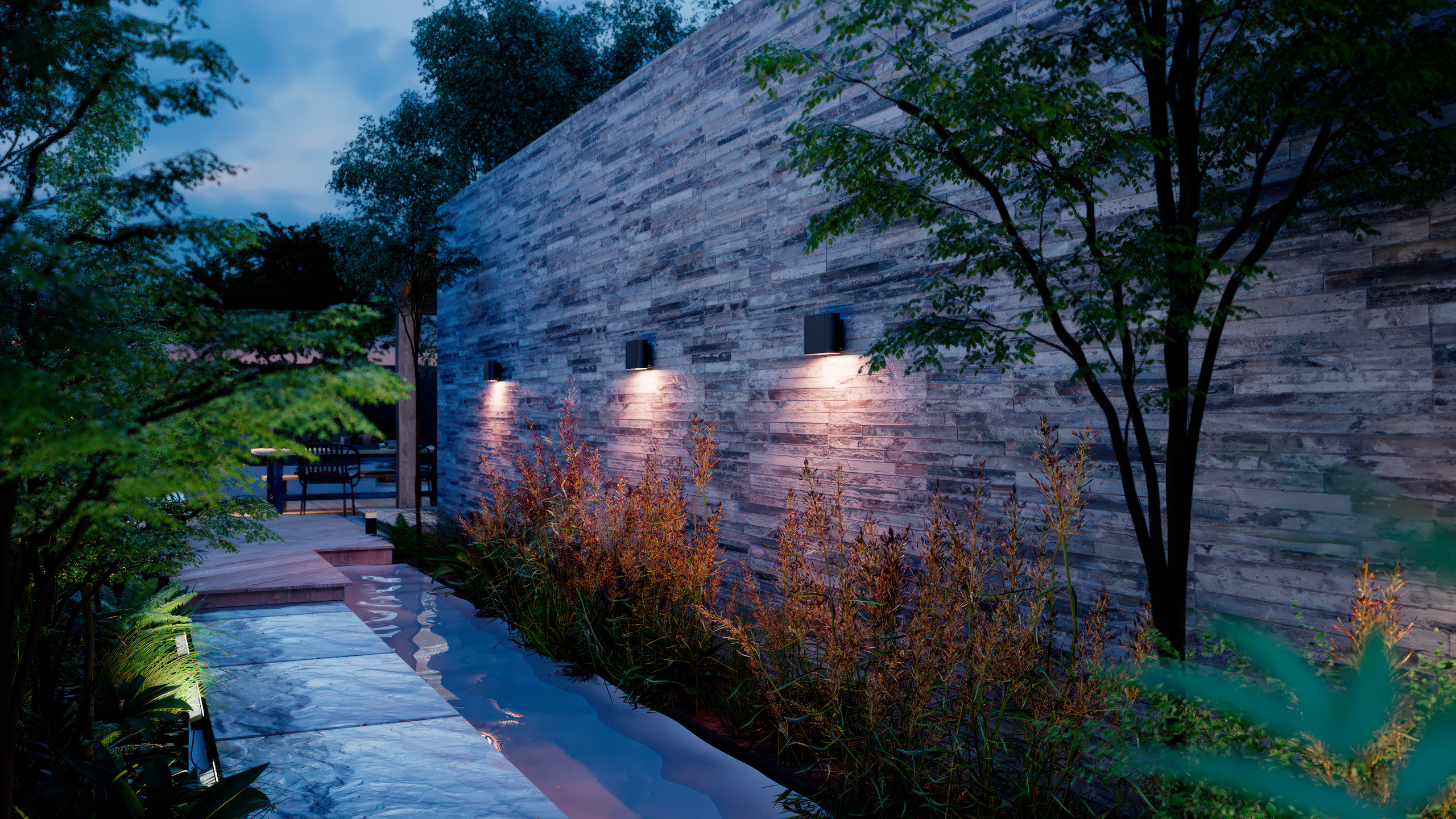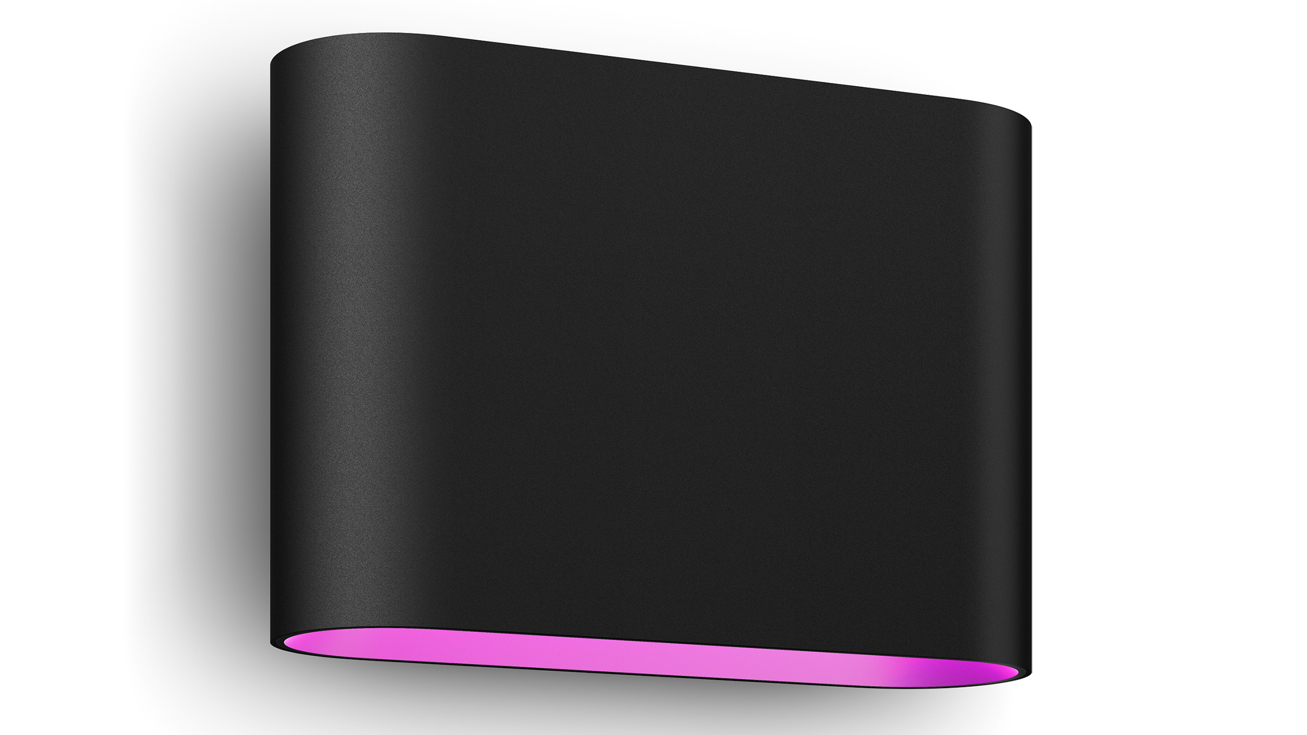 Philips Hue Dymera on nimittäin ulkokäyttöön tarkoitettu seinävalaisin. Mikään ei toki estä käyttämästä sitä sisällä, sillä se on linjakkaan tyylikäs sopiakseen sisustukseenkin. Mutta metallinen, vedeltä suojaava kuori pääsee varsinaisesti edukseen talon tai autokatoksen seinällä.