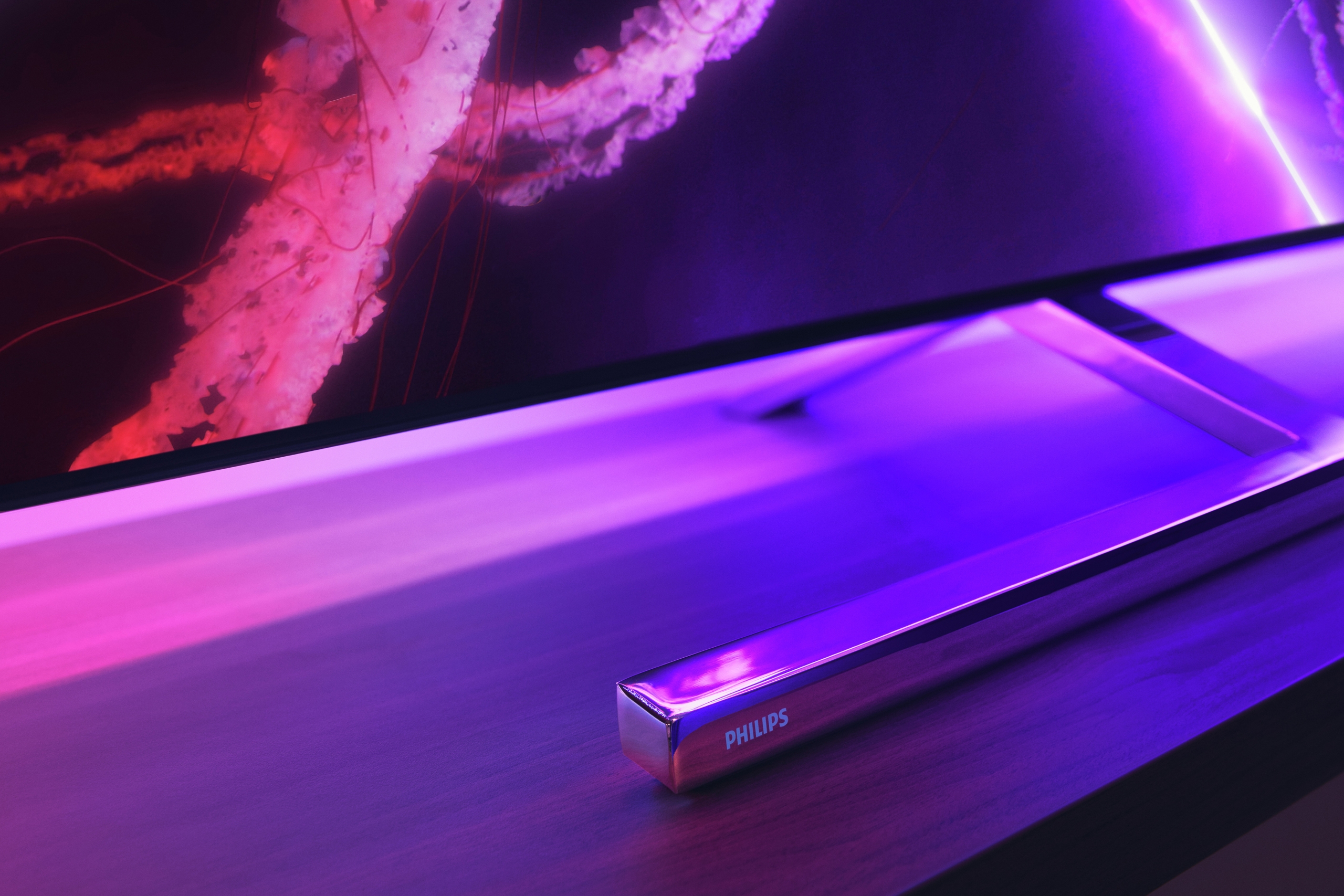 OLED807 ei olisi ehta Philips ilman ruudun reunoille kiinnitettyä tunnelmavalaistusta. Tämän vuoden Ambilight-valoissa ledien laatua on parannettu, valot mukautuvat tv-sisällön toimintaan sulavammin ja huomioivat tilan valaistuksen.