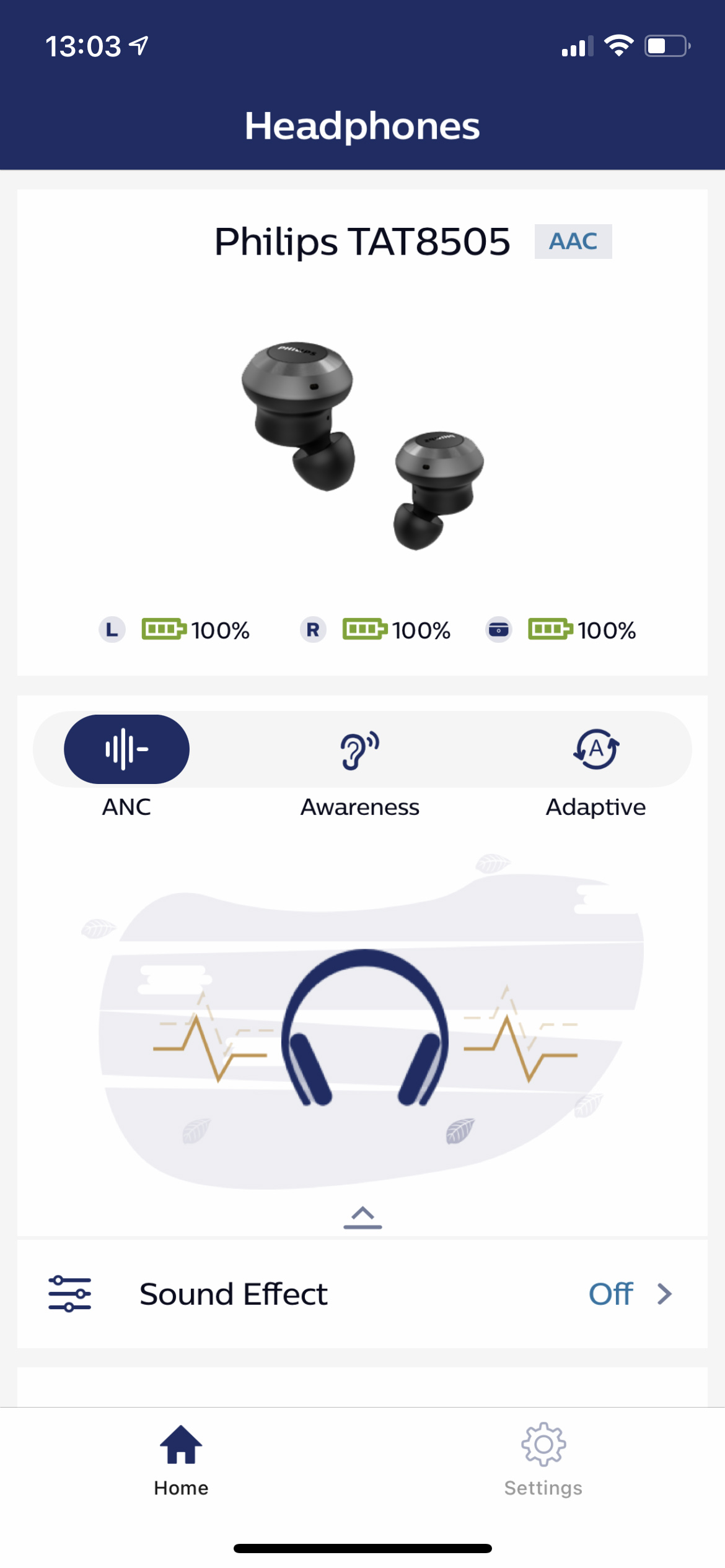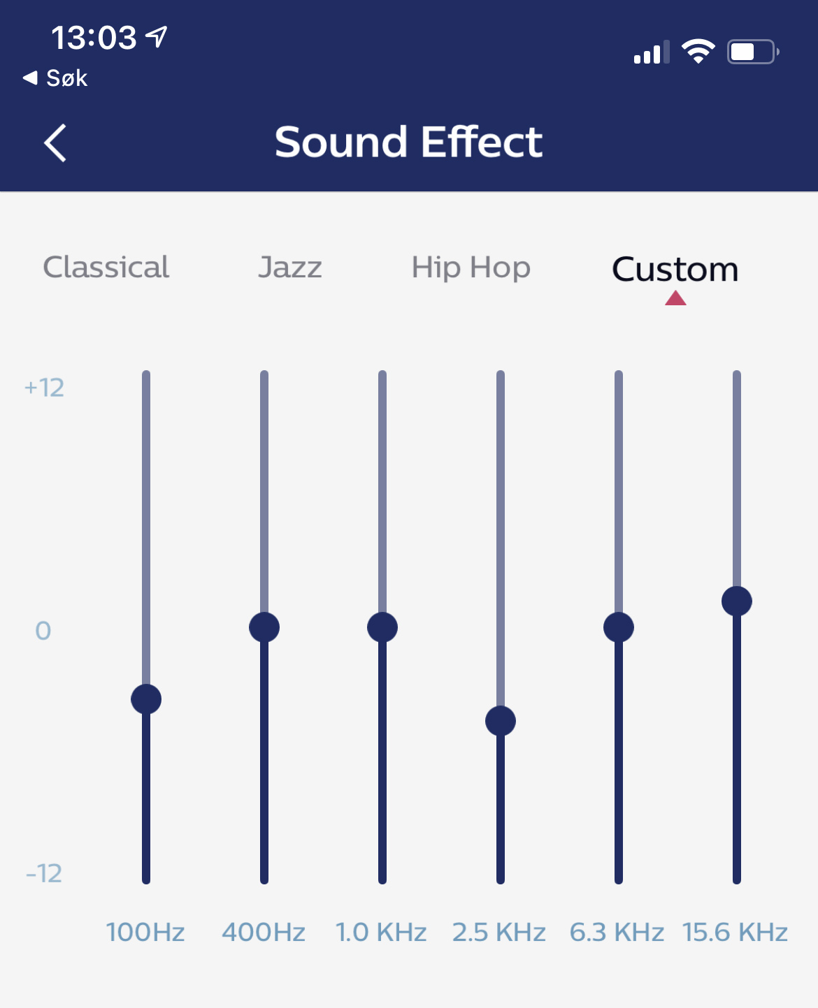 Tehdasasetuksillaan Philips TAT8505 kuulostaa oikein hyvältä. Bassossa on hyvää energiaa, mutta se ole hallitseva. Taylor Swiftin Mr. Perfectly Fine soi hienosti ja soittimet erottuvat hyvin ilman, että ne olisivat toistensa tiellä. 2,5 kHz:in tienoilla on vähän liian reipas meno, mutta sain sitä hillittyä taajuuskorjaimella. Sovelluksen EQ:ssä on peräti kuusi kaistaa, joten ääntä pystyy säätämään monipuolisesti. Nostin käyrää hieman 16 kHz:n kohdalta, mikä toi enemmän ilmavuutta ääneen. Liikaa ei pidä korottaa, sillä silloin äänestä voi tulla terävä. Päätin lopulta myös vaimentaa bassoa 100 Hz:n kohdalta, jotta bassoäänet soisivat puhtaammin.