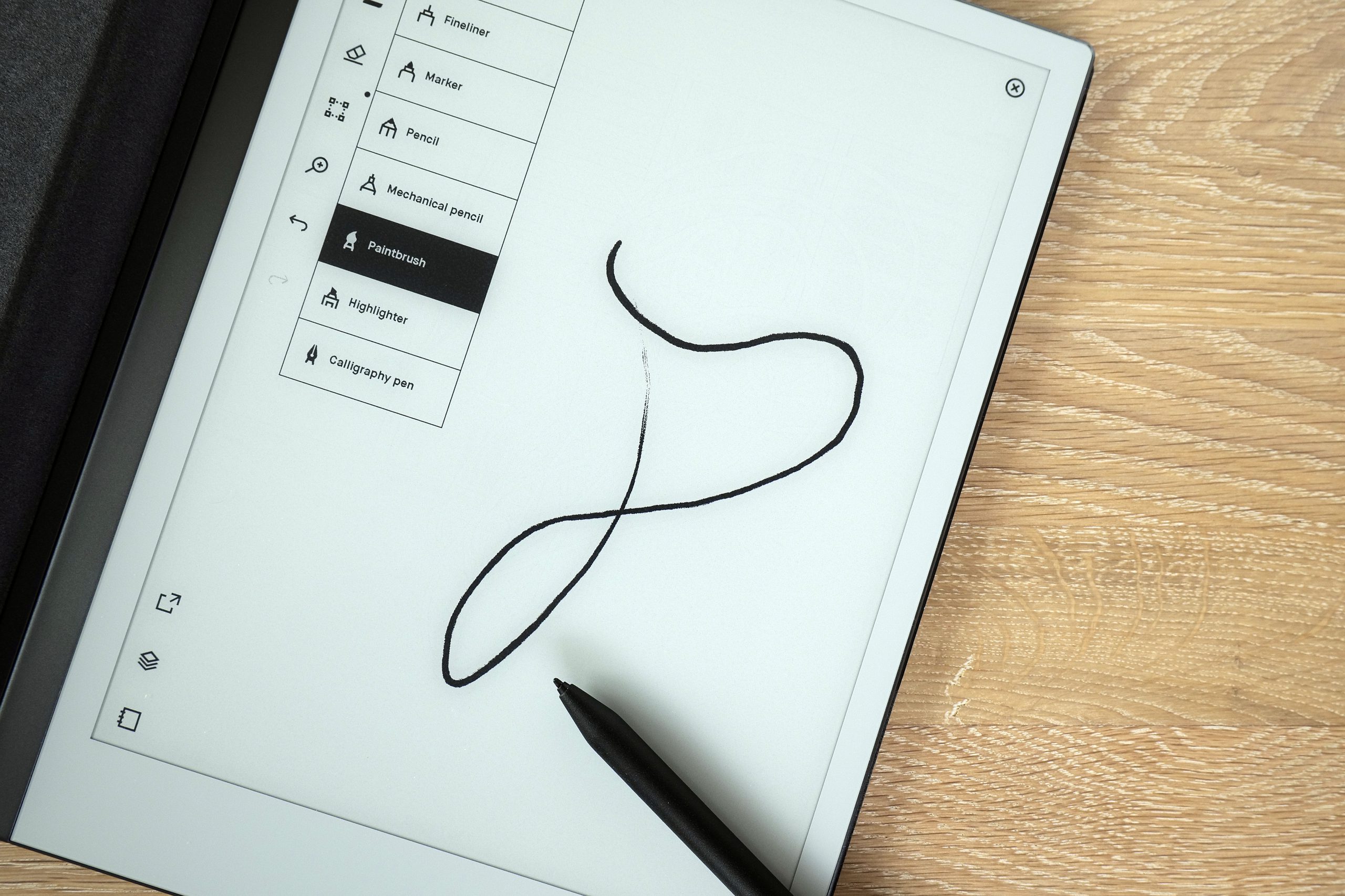 Välineeksi voi valita erilaisia kyniä ohuesta lyijykynästä kalligrafiaan ja siveltimeen – mikä käsillä olevaan tehtävään parhaiten sopiikaan. Merkinnät ovat tietysti mustavalkoisia, mutta näytön 4096-tasoinen kosketusherkkyys tekee itse asiassa kalligrafiastakin hyvännäköistä.