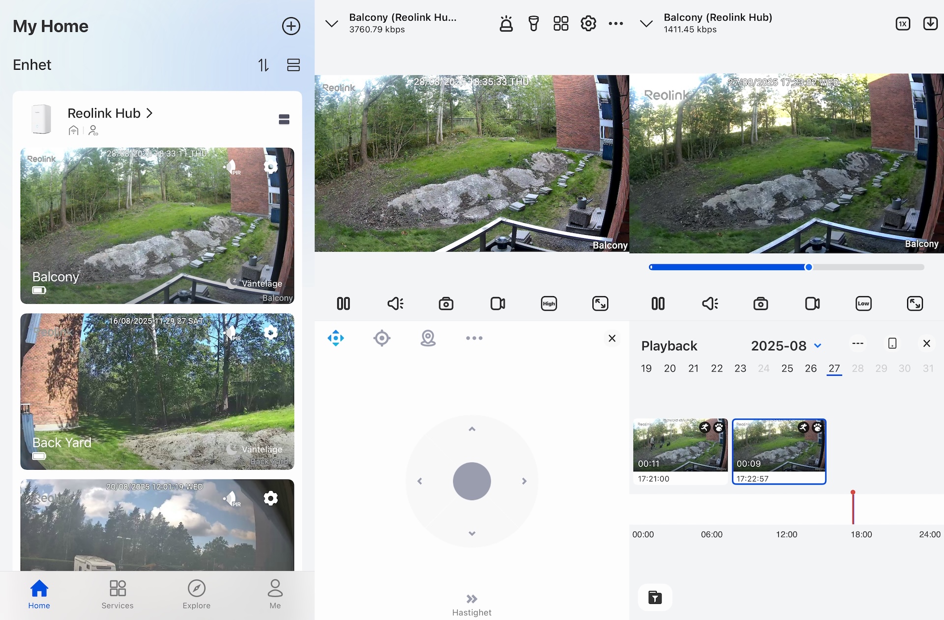 Saatuani tämän testin päätökseen Reolink lähetti minulle myös tästä mallista yksinkertaisemman version nimeltään Reolink Altas. Siinä on matalampi 2K-resoluutio, mutta suurin ero testaamaani malliin on edellä mainitun seurannan puuttuminen. Kokeilin Altas-perusmallia parin päivän ajan, ja sain vaikutelman, että se toimii muuten yhtä hyvin ja on hyvä vaihtoehto paikkoihin, joissa kiinteä kuvakulma riittää. Perusversiota myydään kahden kameran pakkauksessa yhdessä Reolink Hubin kanssa, joka luo erillisen verkon ja tallentaa kummankin kameran videot. Hintaa kahden pakkauksella on vain 60 prosenttia enemmän kuin yhdellä Altas PT Ultra -kameralla.
