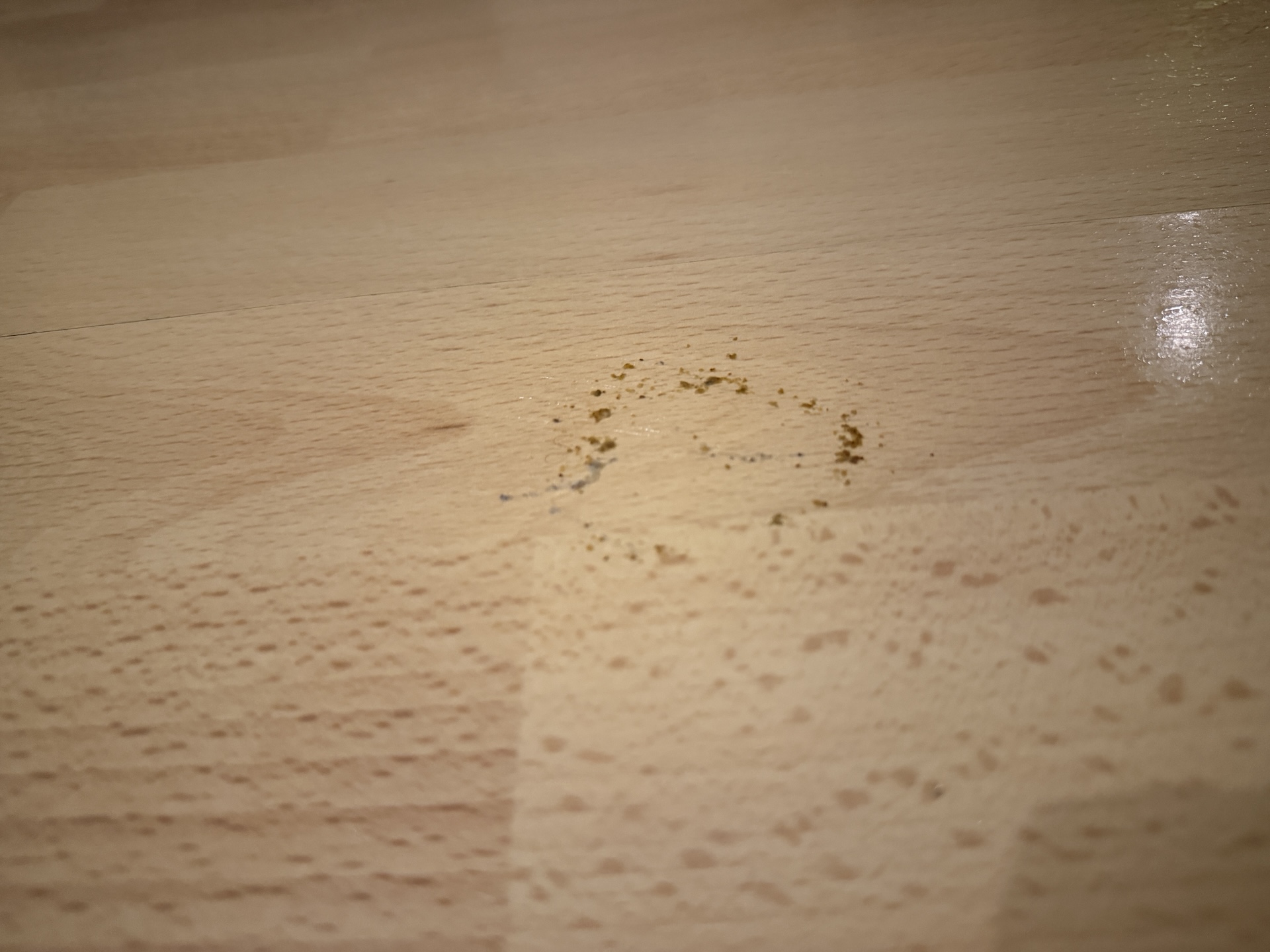 Monenkaan yrityksen jälkeen tahra ei puhdistunut täysin, ja jäljelle jäi vesilammikko. Kuva: Jonas Ekelund