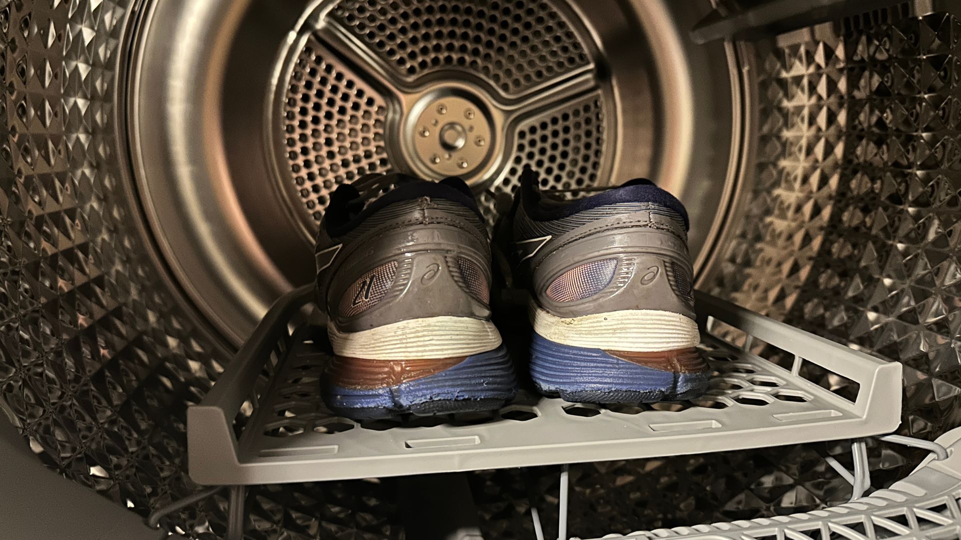 Ehkä on kuivausrummulta vähän liikaa pyydetty, että litimäristä kengistä tulisi aivan kuivat, sillä ne ovat toisenkin kuivausohjelman päätteeksi kosteat. Onneksi en ollut aivan heti lähdössä lenkille, mutta jatkossa suhtaudun kenkien kuivatukseen koneessa pikemminkin desinfiointi- ja raikastusohjelmana, joka myös esikuivaa kengät, ennen kuin laitan ne kuivumaan loppuun huoneilmassa.