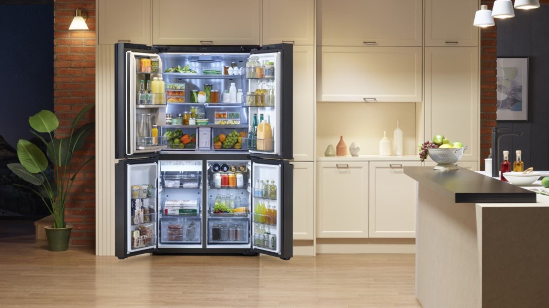 Kaappi on jaettu yläosastaan jääkaapiksi ja alaosastaan pakastimeksi, millä on hyvät ja huonot puolensa. Kun ovia on kahden sijaan neljä, vaatii käyttö tietysti enemmän ovien availua tavalliseen side-by-side-malliin verrattuna. Elämä neljän oven kanssa vaatii totuttelua. Toisaalta ratkaisu mahdollistaa alaosan joustavan käytön, sillä siinä missä jääkaappi on yhtä suurta tilaa, on laitteen alaosa itse asiassa kaksi erillistä kaappia, eikä oikeanpuoleista tarvitse käyttää pakastimena. Se voi toimia juomajääkaappina, jolloin mehut ovat sopivasti lapsen korkeudella tai vieraita varten on aina tarjolla kylmiä virvokkeita. Tai osion lämpötilan voi optimoida vihanneksille ja hedelmille tai lihalle. Tai siitä voi tehdä pikapakastimen, jolla tuoreet lihat tai päivällisen tähteet saa pakastettua ennätysvauhdissa.