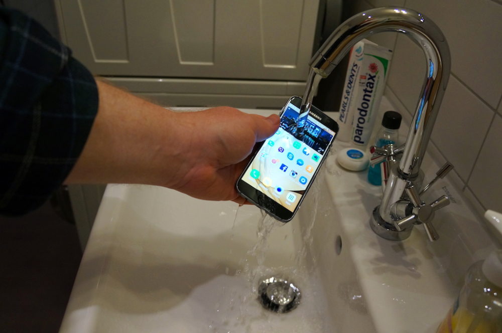Edeltäjäänsä verraten S7 on pikkuisen paksumpi ja painavampi, mutta ne oikeastaan vain lisäävät sen vankkaa uskottavuutta. Vedenkestävyys tekee puhelimesta saumattoman tiiviin sisäpuolelta, joten laitteella on IP68-luokitus. Sen ansiosta puhelimen tulisi kestää vahingoittumatta 30 minuuttia 1,5 metrin syvyyteen upotettuna.