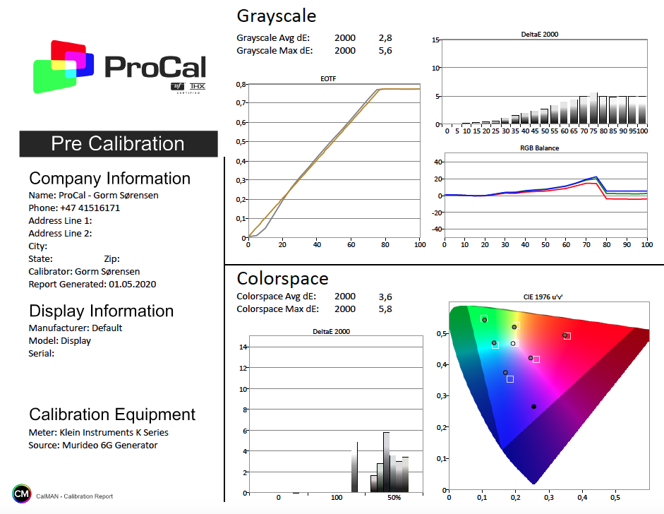 Kalibroinnin suoritti Gorm Sørensen (ProCal). Gorm on ISF- ja THX-sertifioitu kalibrointiasiantuntija, jolla on monen vuoden kokemus TV/AV-, elokuva- ja lähetyspuolelta.