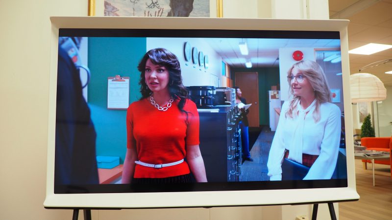 Kun istuu suoraan tv:n edessä, on kuva kuitenkin todella hyvä. Ja tässä The Serifin edut tulevatkin esiin: sitä on helppo liikutella, joten sen voi vaikka työntää nurkkaan ja kääntää enemmän sohvaa kohti – sille on helppo löytää ihanteellinen kulma katselua varten.