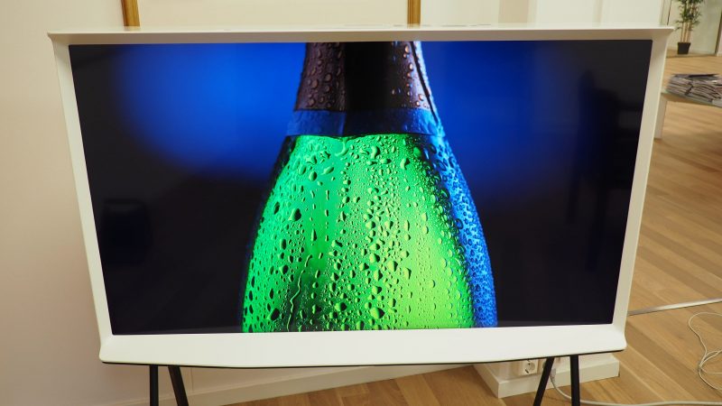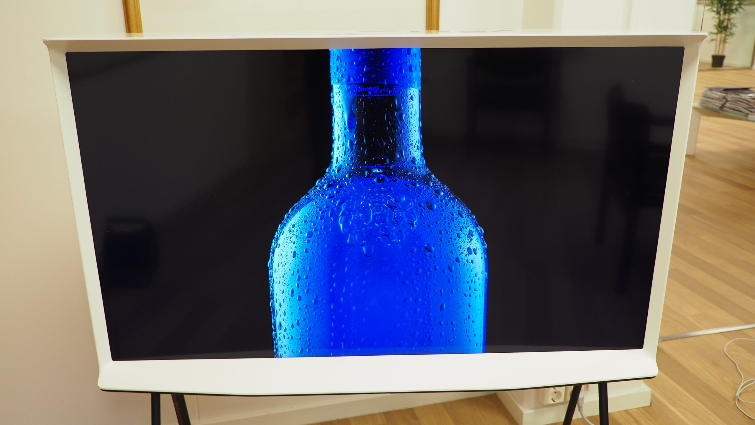 Etenkin sivulta katsoessa erot näkyvät selvästi. Katselukulma ei ole järin laaja, ja tummat alueet sinistyvät enemmän kuin The Framella. The Serif ei myöskään yllä lähellekään mustan mustuutta suoralla taustavalaistuksella varustettuihin televisiomalleihin verrattuna, esimerkiksi Samsung Q80T.