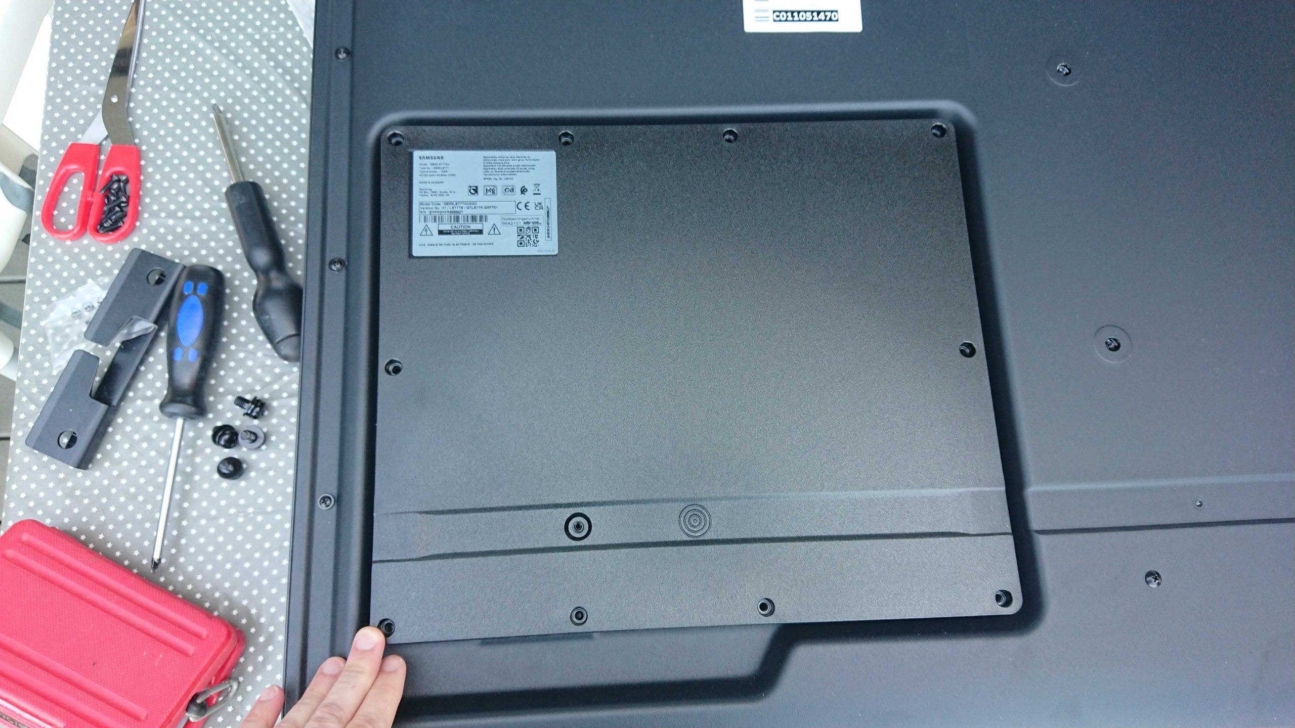 Kuten todettua, on tv tarkoitettu seinälle, mutta meidän piti lainata Samsungilta studiojalkaa, jotta saimme televisiota testattua. Emme suosittele tätä vaihtoehtoa pysyvään käyttöön, vaan mieluiten The Terrace kannattaa kiinnittää seinälle terassikatoksen alle.