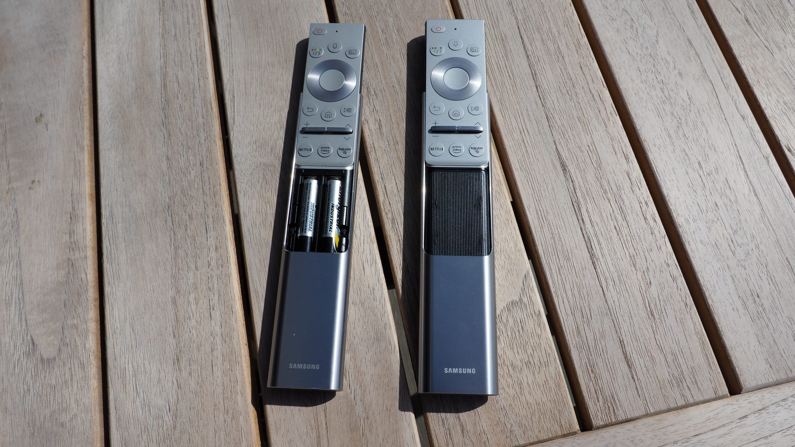The Terracen kaukosäädinkin (oikealla) kestää vettä. Kuva: Audun HageKaukosäädin näyttää aivan Samsungin tavalliselta One Remote -säätimeltä, mutta kun sen ottaa käteen, huomaakin sen olevan painavampi ja paksumpi kuin perusmalli. Se on television tyyliin sopivasti vedenkestävä, mutta harmillista kyllä, se ei lataudu aurinkopaneeleilla, kuten Samsungin uusien sisätelevisioiden kaukosäätimet. Se olisi voinut käytännöllinen ominaisuus terassikaukosäätimessä.