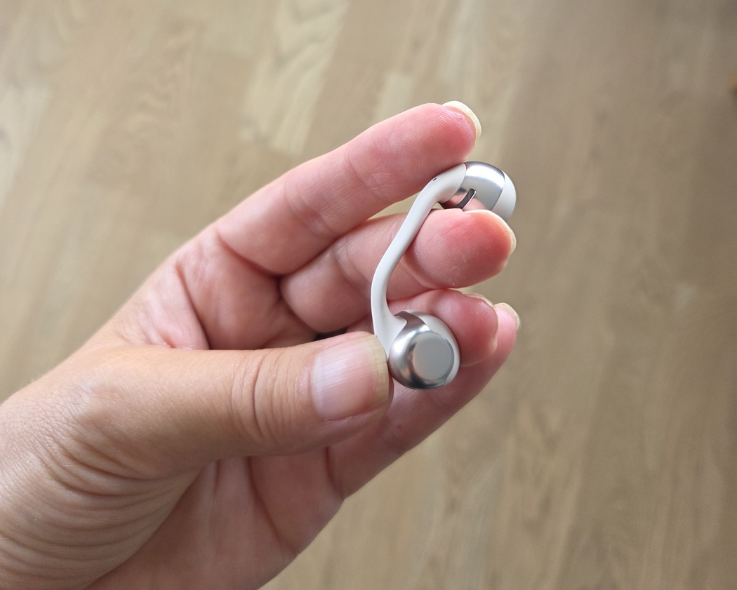 Clip-on-designia edustava kuulokenappi on pehmeä, joustava ja helppo asettaa paikoilleen. Kiva erikoisuus, joka oli myös Huawein FreeClip-mallissa, on se, ettei ole väliä, kumman kuulokenapin laittaa oikeaan ja kumman vasempaan korvaan. Kuulokenapit nimittäin tunnistavat automaattisesti, kummassa korvassa ne ovat, ja säätävät stereon sen mukaan. Minusta on aina hankala tihrustaa pienen pieniä R- ja L-merkintöjä kuulokenapeista, joten tämä toiminto on erittäin tervetullut!