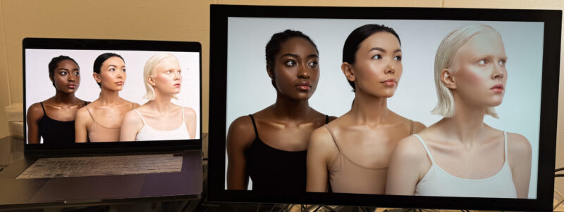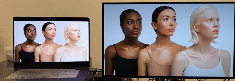 Värikattavuus on hyvä, 98,5 % DCI-P3-väriavaruudesta. Näyttö olisi kuitenkin voitu kalibroida tehtaalla paremmin. Gaming-kuva-aestus sinertää, ja Cinema-asetus taas tuntuu vähän valjulta. Omaan silmääni Standard-asetuksella on paras väritasapaino. Etenkin OLED-näytöissä olisi tärkeää, että värit olisivat tehdasasetuksillaan hyvät. Värejä ei nimittäin voi kalibroida Calibrite ColorChecker Displayn tai Datacolor Spyder X2:n tapaisilla työkaluilla, sillä niissä ei vielä ole OLED-profiileja. Calmanilla kalibrointi onnistuu, mutta hintalappukin on sitten eri luokkaa.