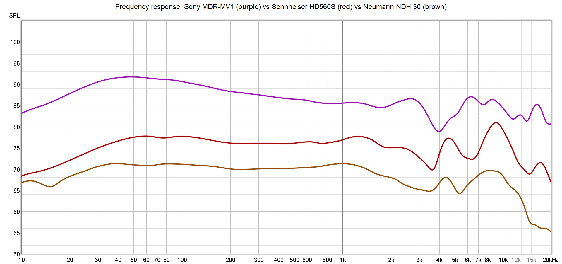 Ajattelin ensin, että 24 ohmin impedanssi ja 100 dB:n herkkyys tekisi kuulokkeista keskitehoiset, mutta Sony soi huomattavasti lujemmin kuin Neumann samalla teholla (120 ohmia/104 dB). Siitä on etua, jos ei omista erityisen tehokasta kuulokevahvistinta.