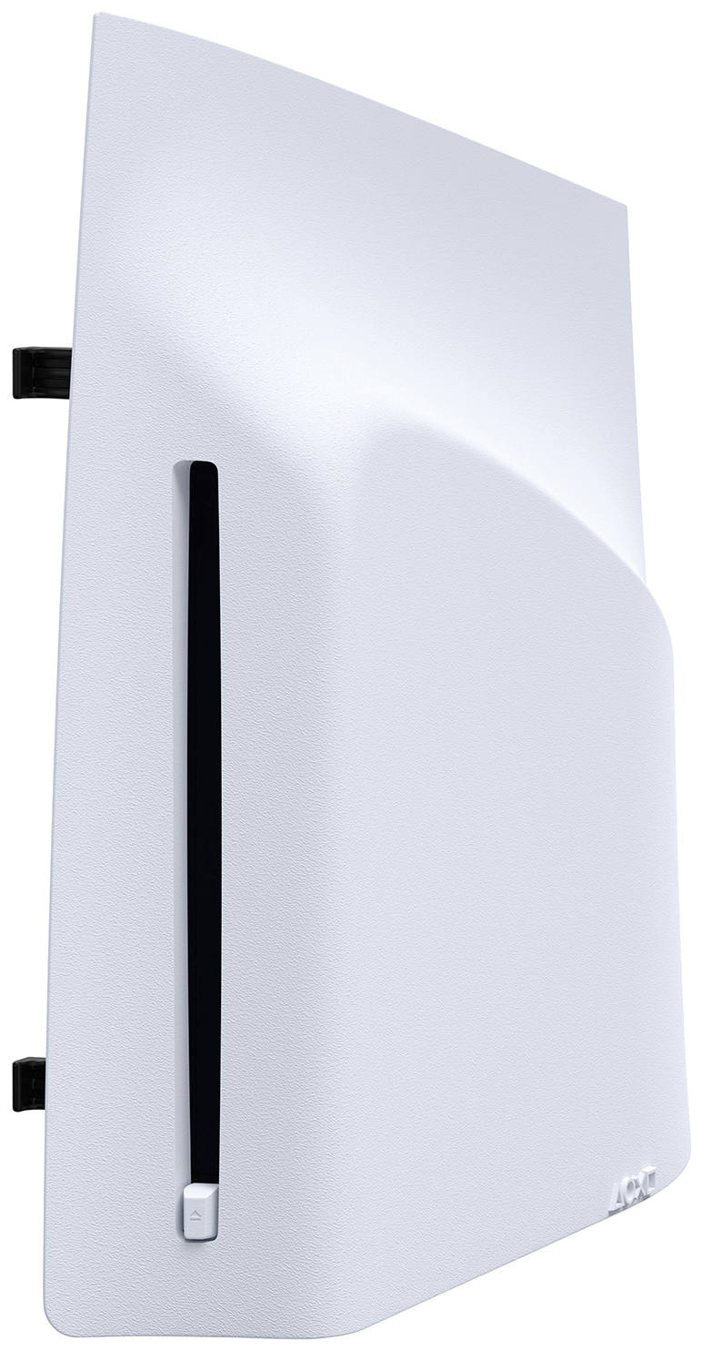 Toinen yhtäläisyys Slim-mallin kanssa ovat valkoiset sivupaneelit, jotka voi vaihtaa personallisempiin vaihtoehtoihin. Uutena yksityiskohtana ovat kyljen kolme vauhtiraitaa, jotka kuvastavat koneen lisätehoja ja helpottavat eri konsolimallien erottamista toisistaan.