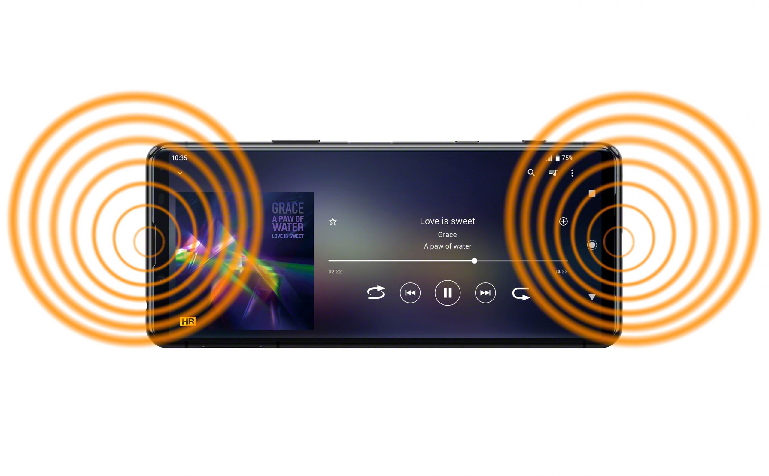 Sony on yksi harvoja valmistajia, joita näyttää kiinnostavan kännykän äänenlaatu. Esimerkiksi kuulokeliitäntä on säilytetty, mikä ei ehkä ole ihme – valmistaahan Sony myös laadukkaita kuulokkeita! Näytön ylä- ja alareunassa on pieni nykämä, johon on saatu piilotettua eteenpäin suunnatut stereokaiuttimet. Sisältä löytyy korkearesoluutioinen ääni, Dolby Atmos ja Sonyn LDAC-koodekki langattomalle audiolle ja pakatun äänen skaalaukselle.