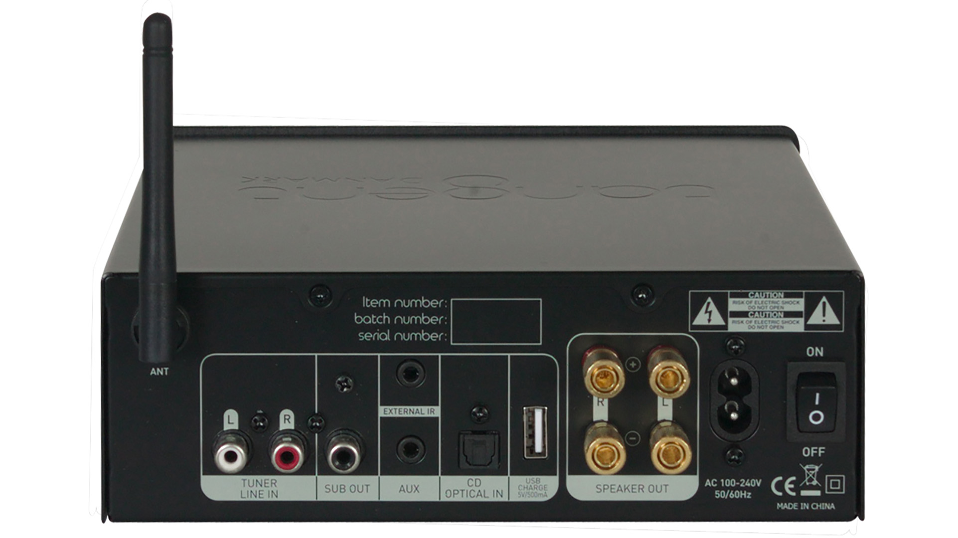 Musiikin soittaminen onnistuu langattomasti kännykästä Bluetooth-yhteydellä. Wi-Fiä tai omaa sovellusta ei ole, mutta hinnan huomioiden niitä ei oikein osaa odottaakaan. Sitä paitsi puutteen voi korjata liittämällä Chromecastin vahvistimen takana olevaan USB-porttiin.