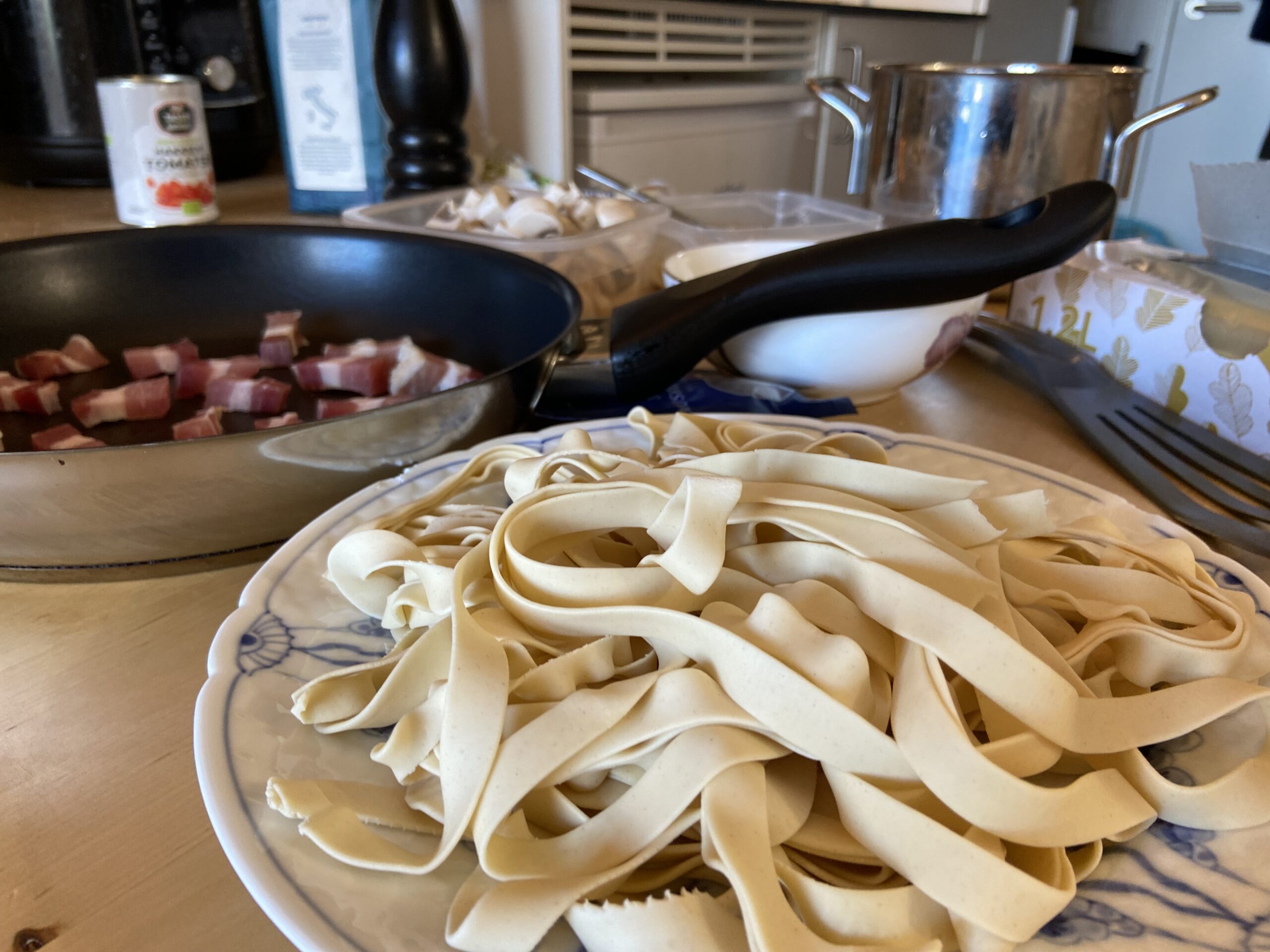 Kananmunia sisältävä taikina kuitenkin onnistui automaattiohjelmalla erittäin hyvin, mutta ei yhtä hyvin kuin jos olisi itse sekoittanut taikinan ja kaulinnut sen. Se johtuu siitä, että kone käyttää lisäksi hieman vettä, kun taas perinteisesti munapastassa on vain munia ja jauhoja. Etenkin tagliatellesta tuli silti mahtavan hyvää ja rakenteeltaan sopivan joustavaa – sekä tavallisesta vehnäjauhosta että durumjauhoista valmistettuna.
