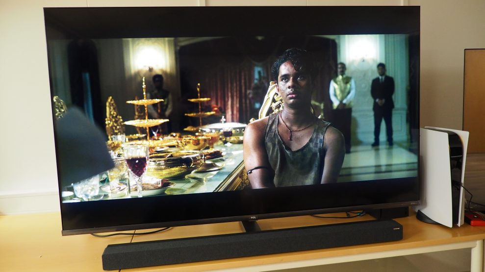 TCL-näytön muotoilu on tyylikäs ja helposti lähestyttävä, ja se on paljon ylellisempi kuin aiemmin testaamamme TCL-mallit. Kokonaisuus on kapea ja suoralinjainen, ja ruutua ympäröi varsin kapea kehys. Äänipuoli on ratkaistu erillisellä, television alareunaan kiinnitetyllä soundbarilla, joka on verhoiltu tummalla kankaalla. Seinäkiinnityskin onnistuu erillisten soundbar-kiinnikkeiden avulla, jotka tulevat mukana paketissa.