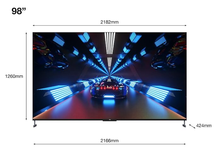 Vasta hetki sitten 85 tuumaa oli suurin televisiokoko, jollainen tavallisen ihmisen kodista saattoi löytyä. 98-tuumaisia näkyi ammattilaiskäytössä, kuten mainosnäyttöinä, mutta nyt sellaisiakin saa kotikäyttöön. Kuvan ala on melkein 2,8 neliömetriä!