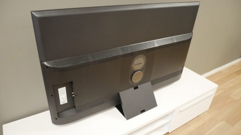 Ensisilmäyksellä tummakehyksinen televisio näyttää melko geneeriseltä. Mikään ei pistä silmään. Keskijalustan ansiosta tv on helppo sijoittaa tasolle.