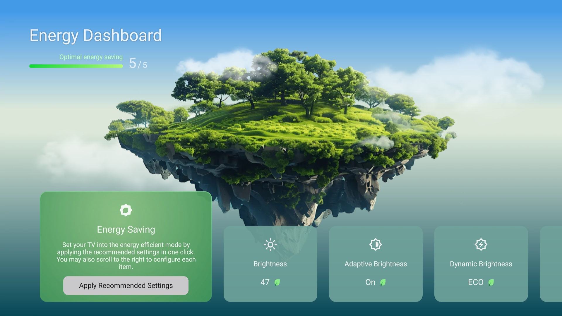 Kuvanlaadun esteenä on ensin tehtaalla asetetut virransäästötoiminnot, jotka kannattaa sammuttaa. Kaikissa nykytelevisioissa on jonkinlainen ekoasetus, joka heikentää kuvan kirkkautta. Tarkoitus on täyttää EU:n energiatehokkuusvaatimukset, mutta samalla television kuvanlaatu heikkenee turhan paljon. Onneksi TCL on lisännyt uusiin televisioihinsa Energy Dashboard -valikon, josta on helppo säätää haluttuja asetuksia ja saada kuva mieleisekseen.