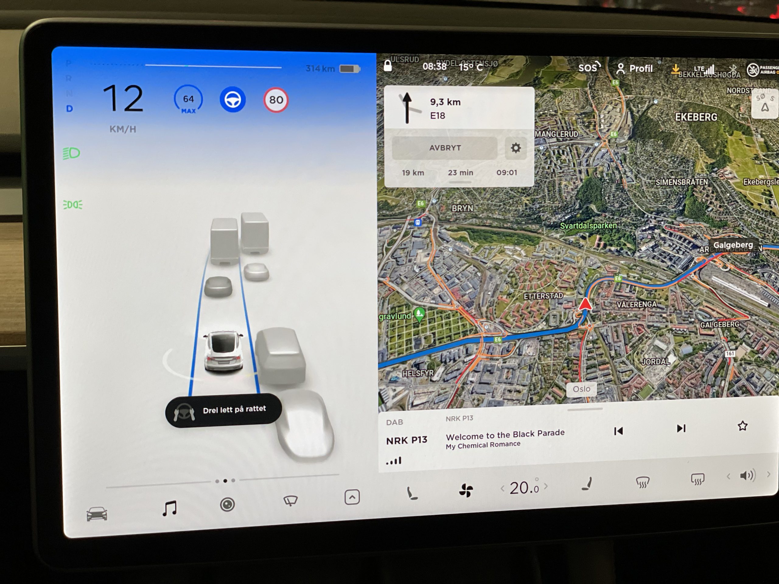 Autopilotin ollessa päällä kuljettajan täytyykin ostata lepuuttaa kättä rennosti rattia vasten, jolloin auto hoitaa ohjauksen. Minua auton tapa pyytää liikauttamaan rattia aina parinkymmenen sekunnin välein häiritsi, joten pidemmän päälle tulin siihen tulokseen, että ohjaan autoa mieluummin manuaalisesti. Myös manuaaliohjauksella Tesla tekee korjaavia liikkeitä, jos se epäilee ulosajoa tai törmäystä.
