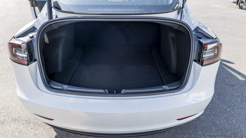 Jos ei ole aikeissa kuljettaa ihmisiä, on tavaroille kyllä yllin kyllin tilaa. Model 3:n tavaratila ei tosin ole järin käytännöllinen, sillä pienen takaluukun vuoksi tavaroita pitää hiukan sovitella paikoilleen. Muissa autoissa tavarat voi sijoitella melko vapaasti, mutta tässä tarvitaan vähän tarkkuutta. Lastenvaunut kuitenkin mahtuvat vallan hyvin kyytiin.
