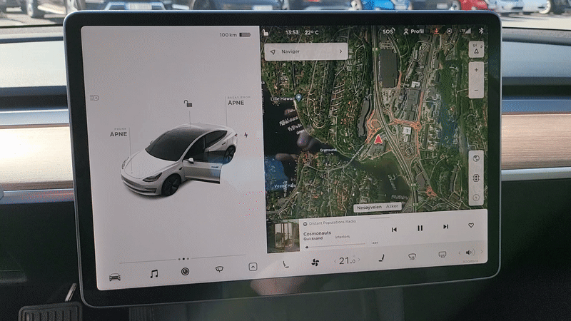 Teslan infotainmentjärjestelmä vie viihdevarustelun pykälää pidemmälle kuin kilpailijat tarjoamalla Netflixin, Spotifyn ja nettiradion. Netflixin katsomista varten auton täytyy kuitenkin olla parkissa.