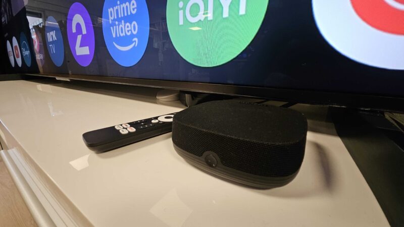 Mediasoitin toimii Google TV -käyttöliittymällä, jollainen löytyy myös Googlen omasta TV Streamer -mallista ja monesta muustakin. Thomsonin laitteessa on mikrofoni ja pikkuruinen kaiutin puheohjausta varten. Kaikki on saatu mahdutettua varsin kompaktiin pakettiin, joka on saatavana mustana ja valkoisena.