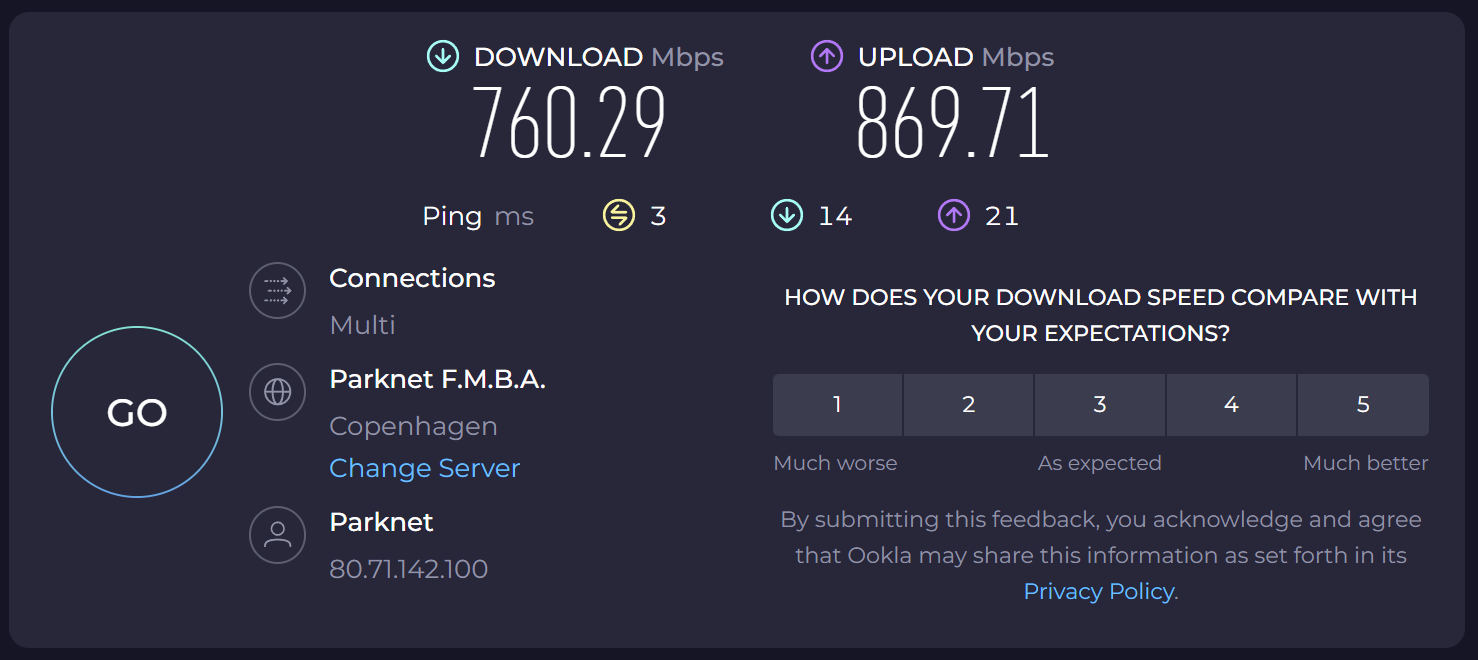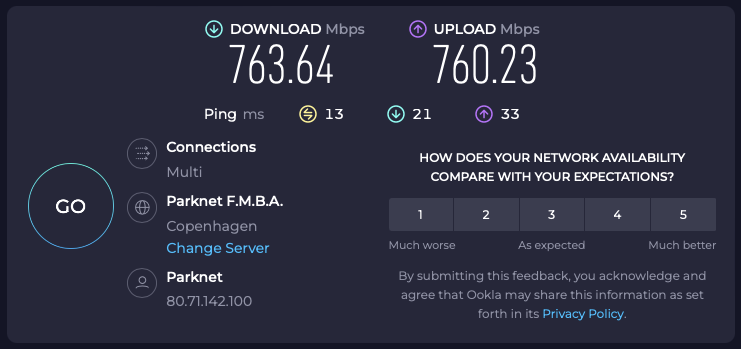 Pidän pääreititintä makuuhuoneen kaapissa, joten ei ihme, että testin parhaat tuloksetkin ovat sieltä. Nyt Macbook ja iPhone yllättivät eniten: Macbookin nopeus kasvoi 800/900 Mbit:iin sekunnissa, kun taas iPhone pääsi 580 Mbit/s-vauhtiin eli samaan luokkaan kuin keittiössäkin. Kuten näkyy, nopeus hieman vaihtelee, mutta ei hirveästi. Deco BE85 -laitteet keskustelevat keskenään hyvin ja onnistuvat sielläkin, missä vanha järjestelmäni epäonnistui. Taidan vihdoin ymmärtää, miksi Sonos-kaiutinjärjestelmäni on pätkinyt ja kärsinyt yhteysongelmista jo vuosia.