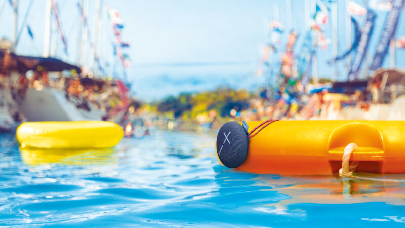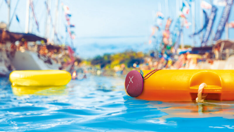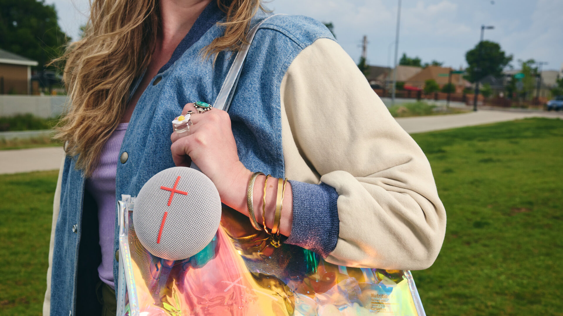 Koska Ultimate Ears Miniroll on niin pieni ja kevyt, sitä voi käyttää asusteena. Ainakin Ultimate Earsin mainosten suunnittelijan mielestä.