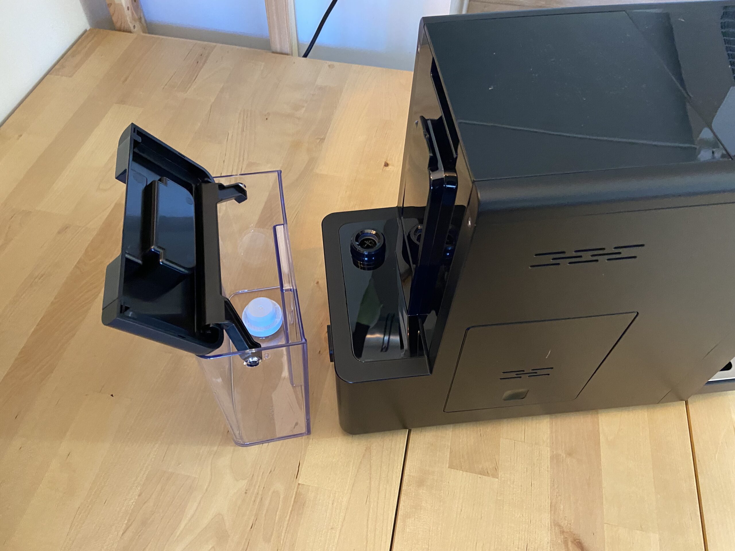 Papusäiliöön mahtuu maltilliset 150 grammaa papuja, ja maitosäiliö vetää 2,4 desilitraa maitoa. Kone on hiljainen ja lisäksi pieni. Hillityn näköinen kuutio mahtuu mihin vain ja solahtaa myös muotoilunsa puolesta mihin vain, eikä sen käynnistäminen peitä alleen aamuradion uutisia.