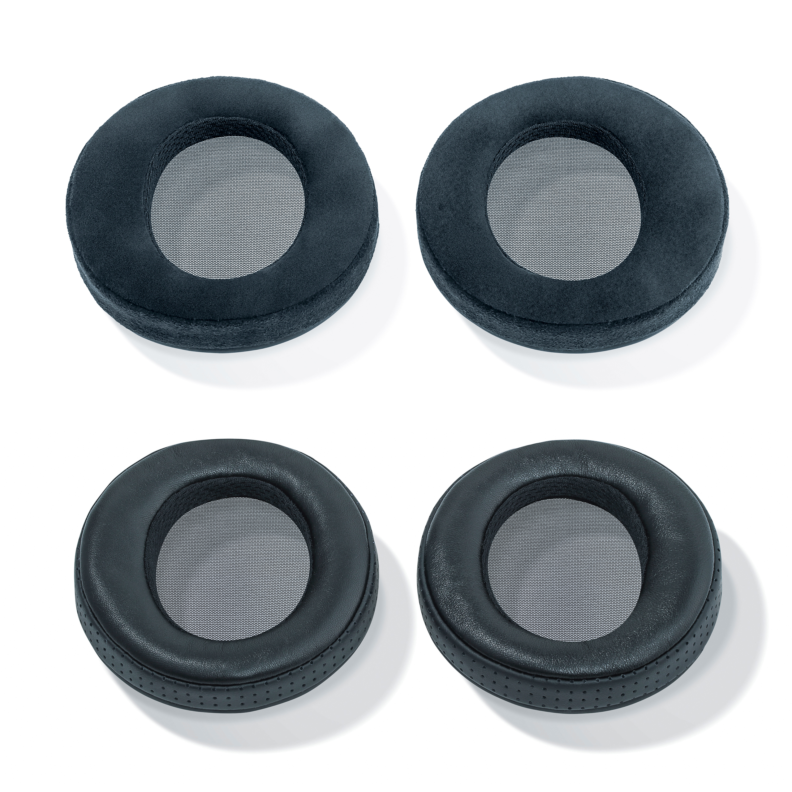 Yamaha YH-5000SE toimitetaan tosiaan kaksien pehmusteiden kanssa: sileällä nahalla ja mokkamaisella keinonahalla päällystetyillä. Sileä nahka on rei’itetty hengittävyyden parantamiseksi, ja keskiosassa harsomainen kangas suojaamassa elementtejä pölyltä. Toray Ultrasuede -keinomokka tuntuu korvilla todella miellyttävältä.